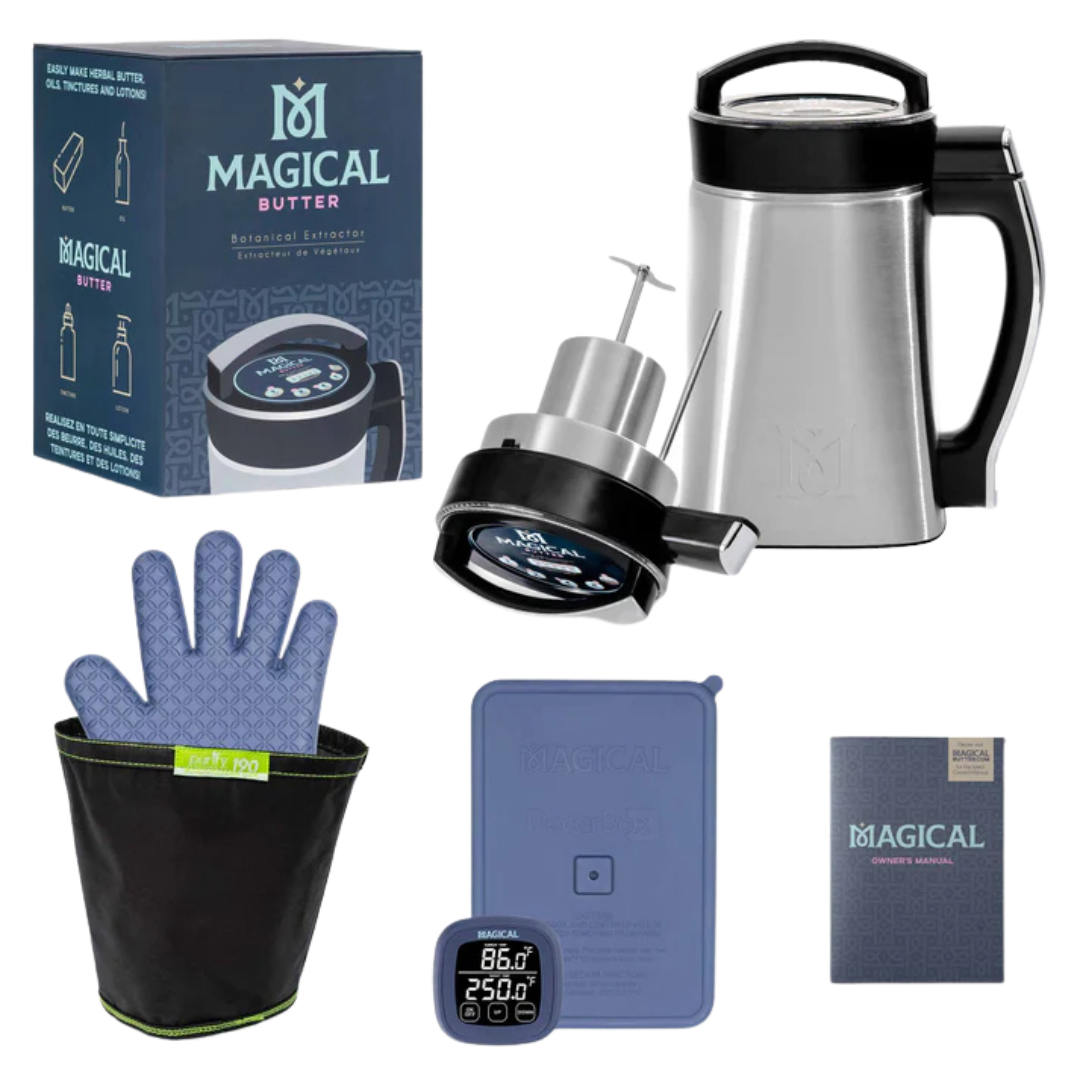 Included: MagicalButter machine, DecarBox Thermometer Combo Pack, Magical Glove, Purify Micron 190 Filter, Magical Cookbook, Owner's Manual and 240v AU power cord.
